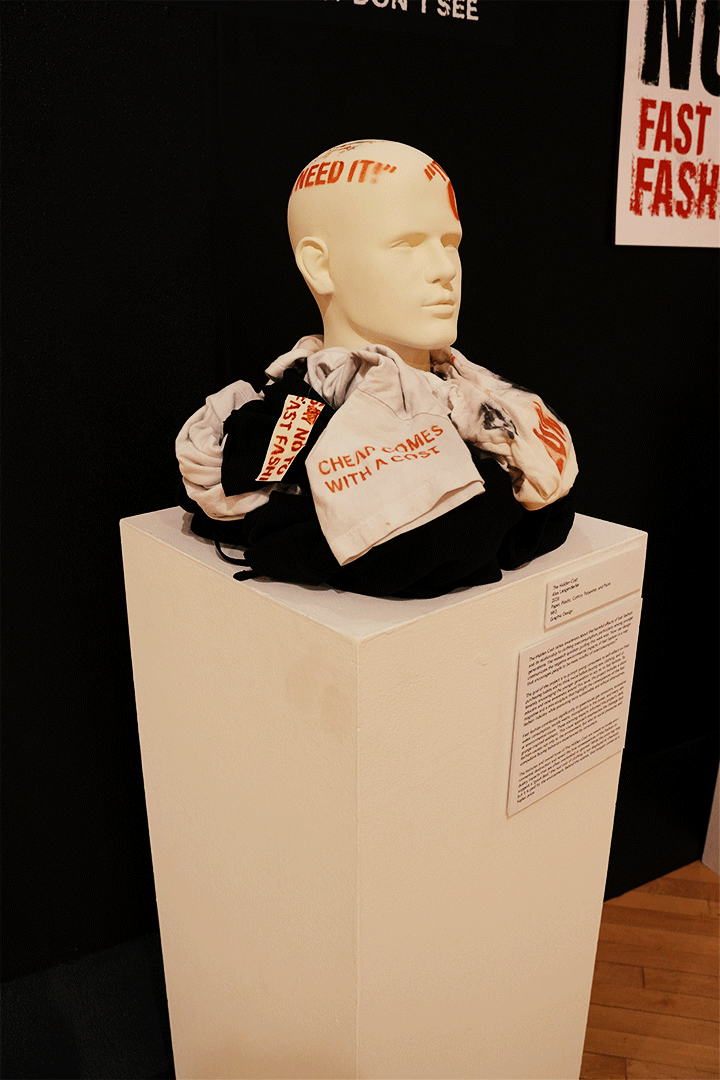 The Hidden Cost was displayed at the 2026 BGSU BFA Senior Thesis Exhibiton titled, The Victory Lap.