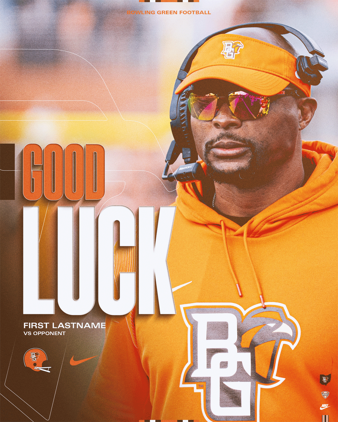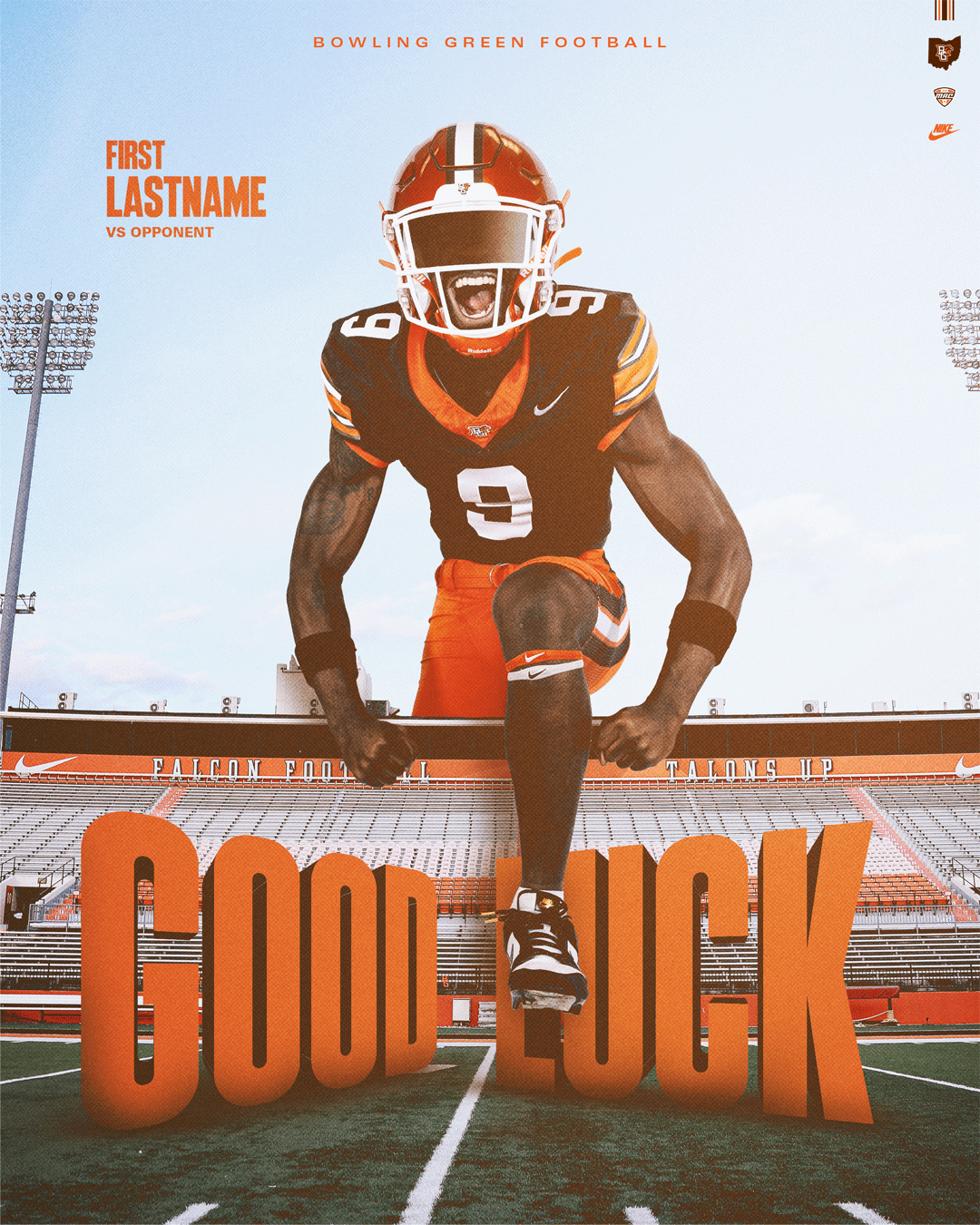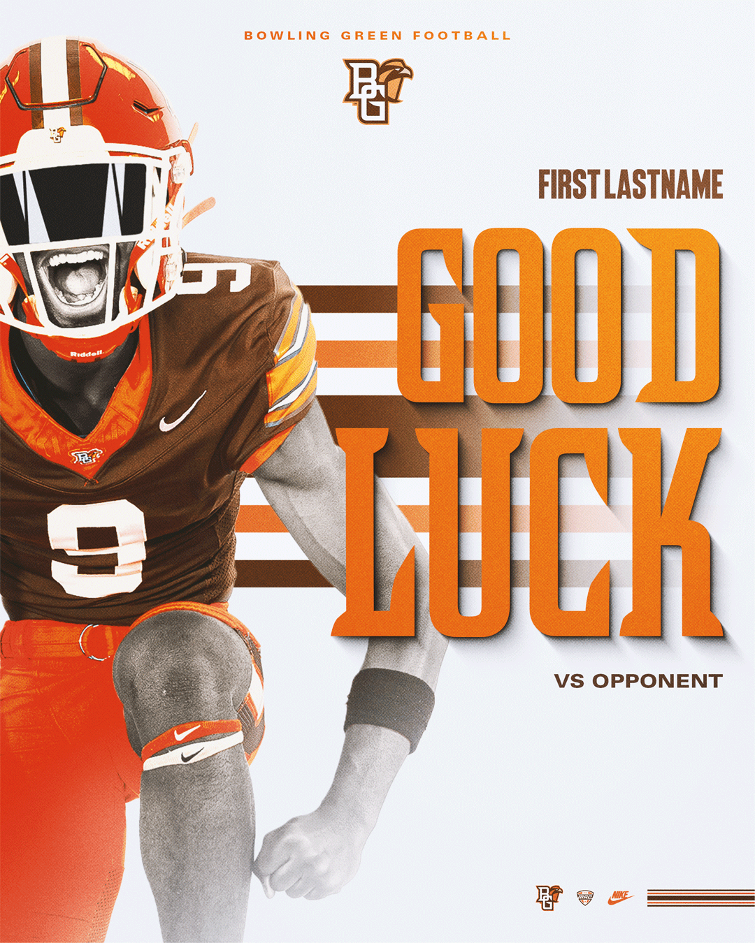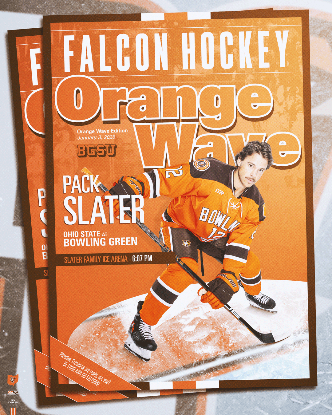 A series of schedule posters designed for the 2025–2026 Bowling Green State University Athletics programs. These pieces adhere to the official BGSU brand identity while using layered compositions and detailed player cutouts to visually communicate the energy, integrity, and toughness of each sport. Each poster was printed at 11” × 17”.